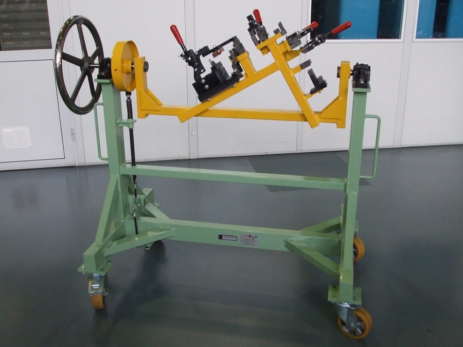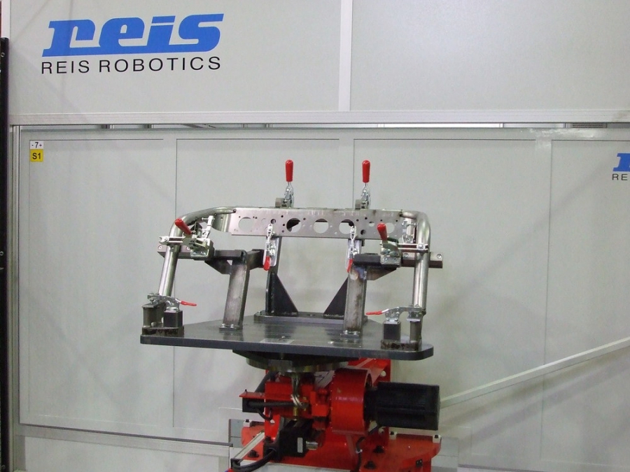 In der Schweißvorrichtung werden Blechteile des Kunden miteinander verschweißt. Dazu werden die einzelnen Blechteile in die entsprechenden Aufnahmen gelegt und mittels Kniehebenspanner fixiert. Um die Zugänglichkeit zu verbessern ist die Schweißvorrichtung drehbar gestaltet, wobei 3 vordefinierte Rastungen genutzt werden können.